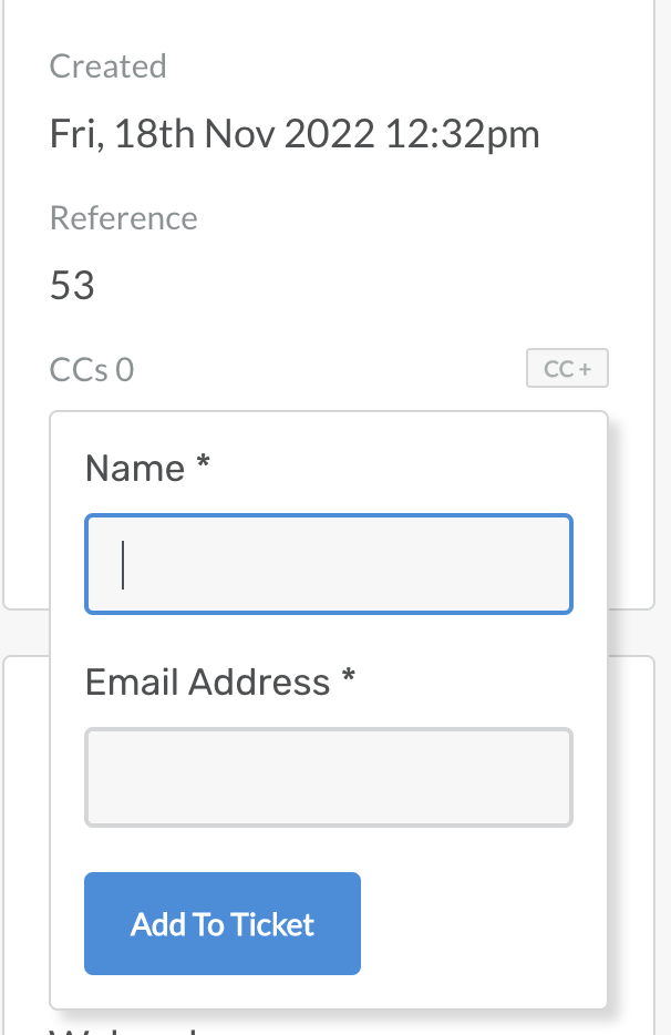 If another user in your organization should be sent a copy of the ticket, you can do so by adding the user.