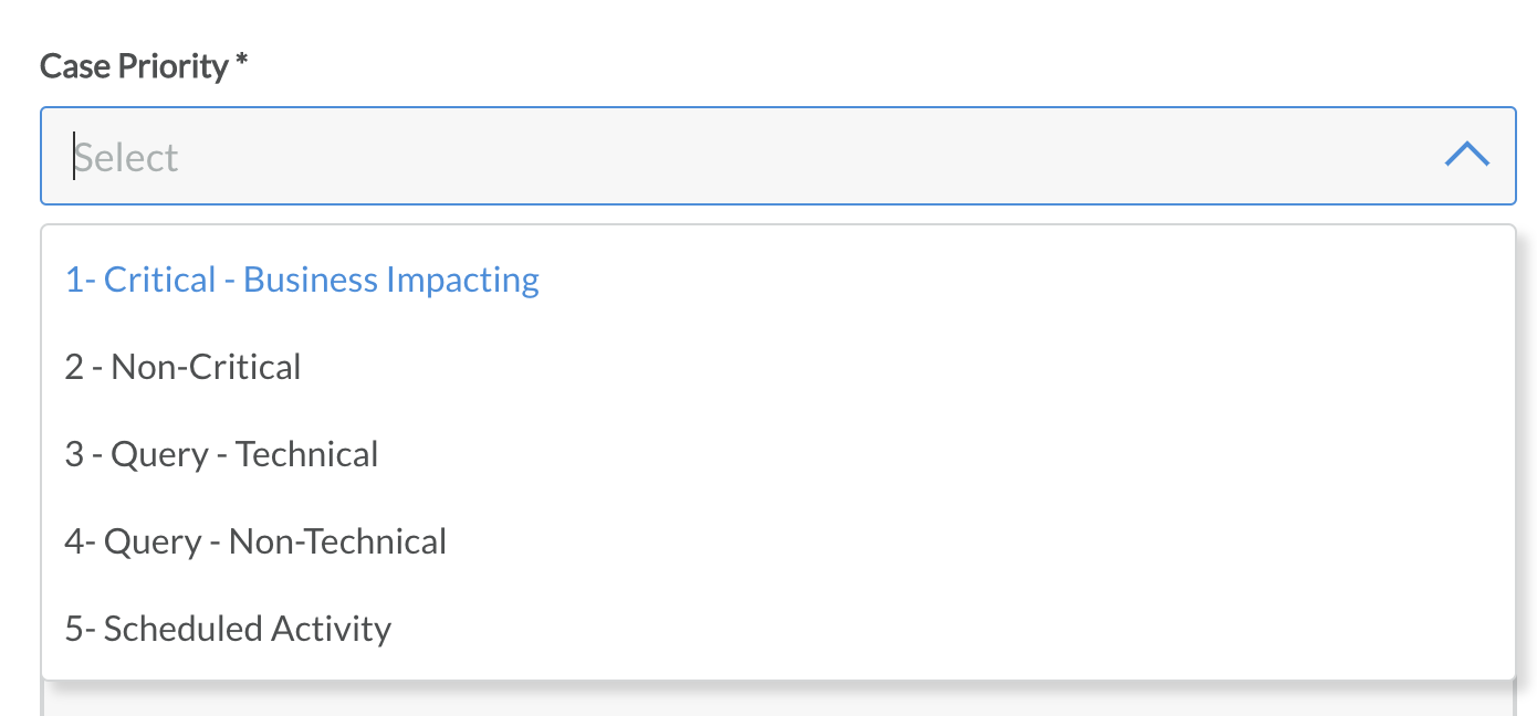 Choose the appropriate Case Priority for the ticket from the drop-down: