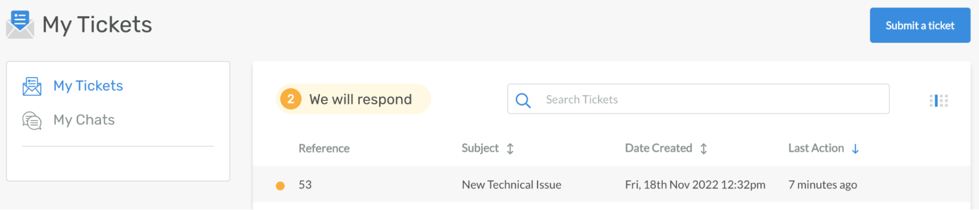 This will show the list of all the tickets which are resolved, currently being worked on or are waiting for a response either from you or Webscale Support.