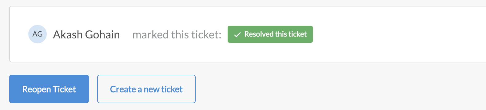 If your issue has been resolved, you can choose to mark the ticket as such. Once a ticket is resolved, you can choose a satisfaction rating. If the same issue recurs, the same ticket can be re-opened within 30 days from the ticket closure date.