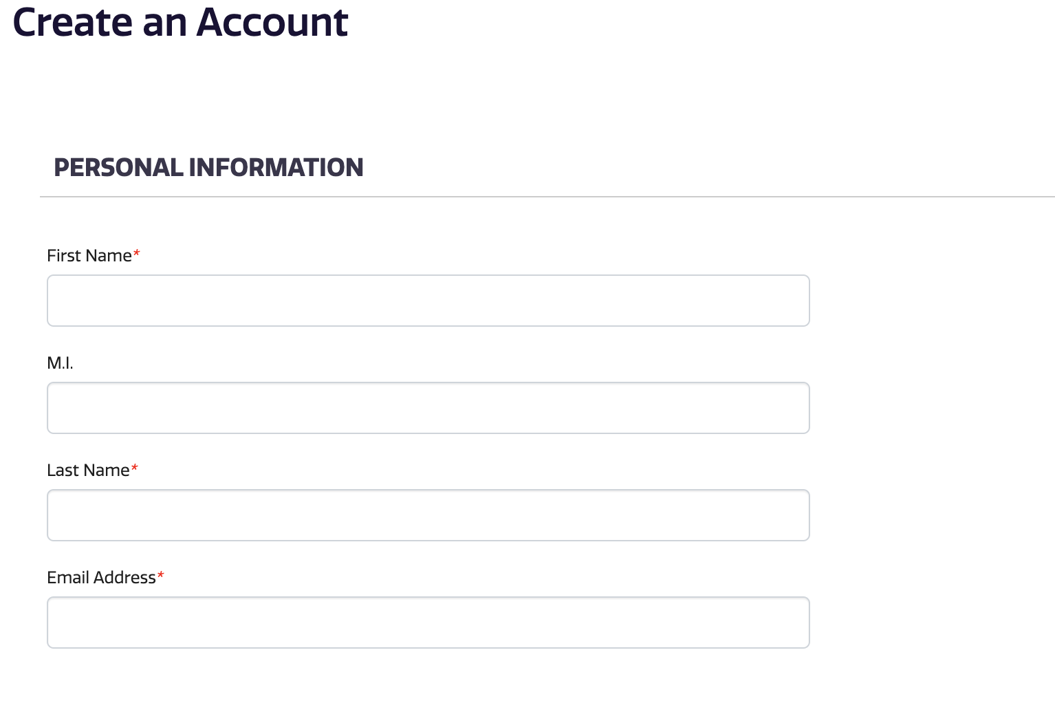 To sign up for a new account, click the Create an Account button. Enter your personal, address and login information and then solve the captcha challenge.
