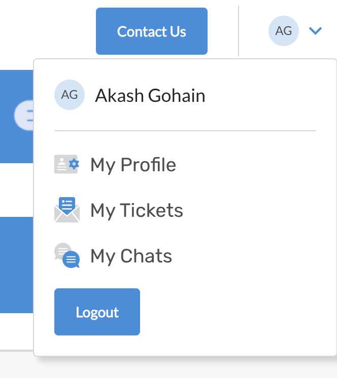 Check and update existing tickets from the My Tickets section under the profile icon in the upper right corner.