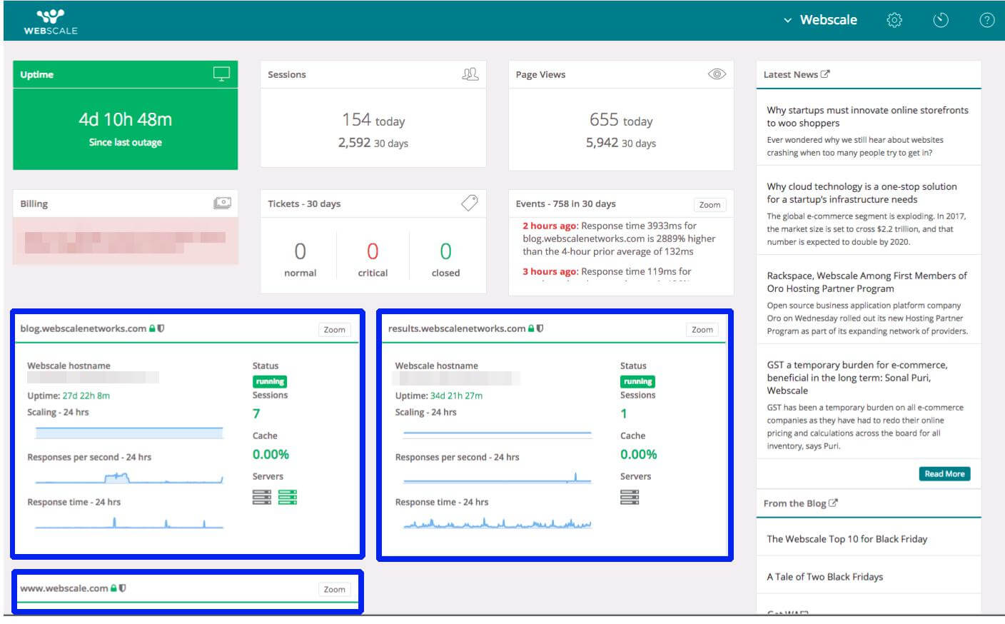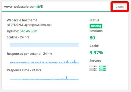 From the Webscale Control Panel’s main page (called the Dashboard), each application section shows the following: