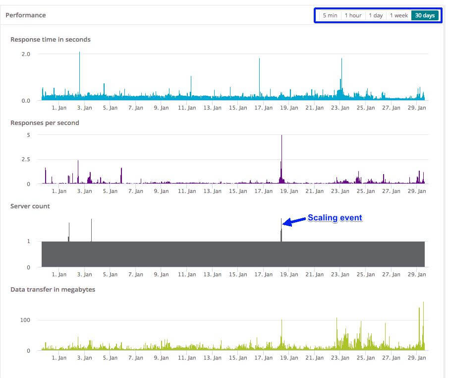 The Webscale Control Panel displays application server information and status. In the control panel you can find out how many servers are currently active, what are those servers’ IPs, if any additional servers are being scaled, and more.