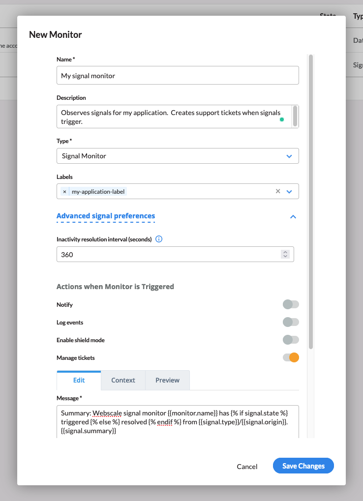 When no labels are configured for a signal monitor, the monitor will be observing signals for your account.In the advanced signal preferences, an Inactivity resolution interval may be configured. This interval represents an amount of time in seconds that must pass while all relevant matched signals are resolved before resolving the state of a signal monitor.