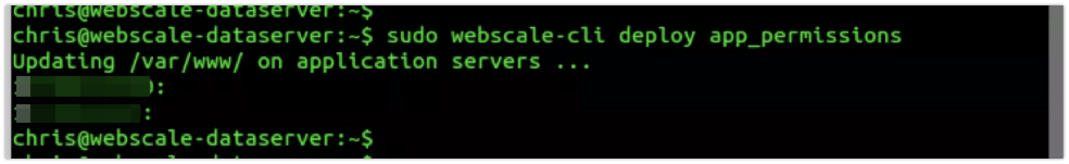 The commandsudo webscale-cli deploy app_permissions does the same thing as sudo webscale-cli deploy permissions, but on the application/web servers that exist when you execute the command.