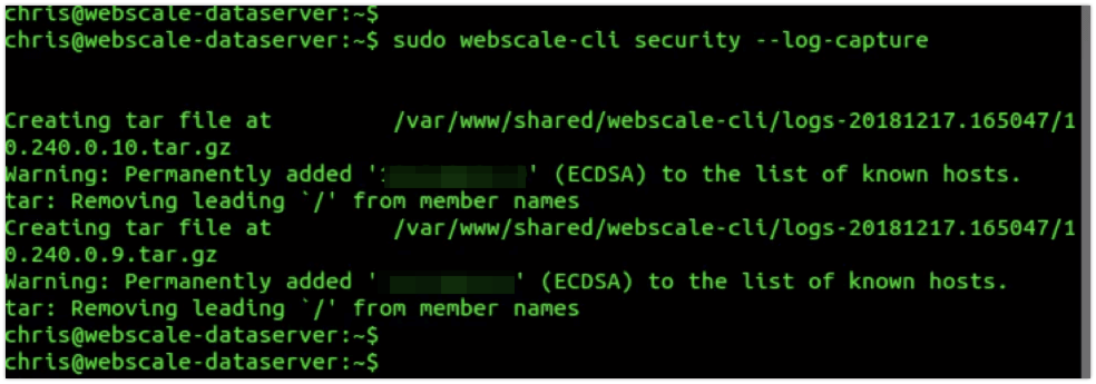 sudo webscale-cli security --log-capture: SSH to every app server and runtar /var/log/apache2/