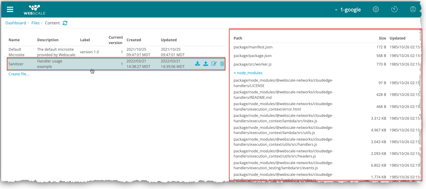 You must upload a handler file before you can create handlers. The Files page enables you to upload and manage files. With one exception, the CloudEDGE Workers feature follows the same procedures for uploading and managing files as other Webscale features that use uploaded files. The procedure for previewing handler content files is specific to CloudEDGE Workers.
