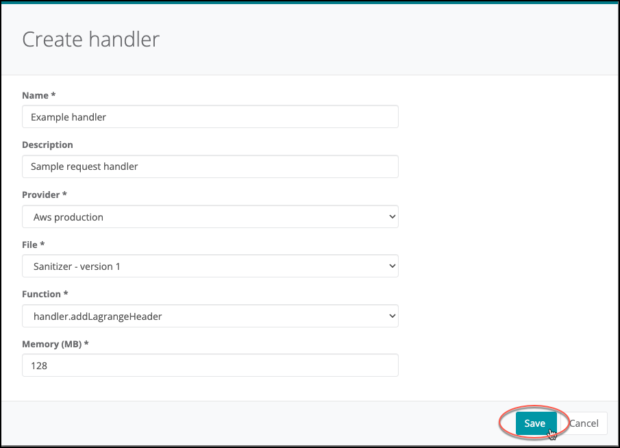 In the Create handler dialog box, enter a name and, optionally, a description.