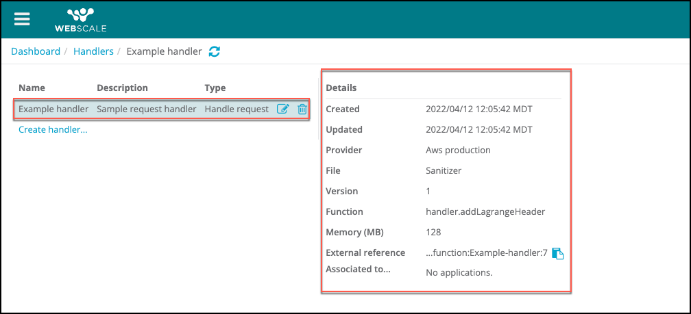 A handler is a request or response handler based on the type of JavaScript function that you select when you create the handler. As such, Webscale will use it for either requests or responses. You can create several handlers with the same handler file. If the handler file contains multiple functions, you could create a handler for each function.