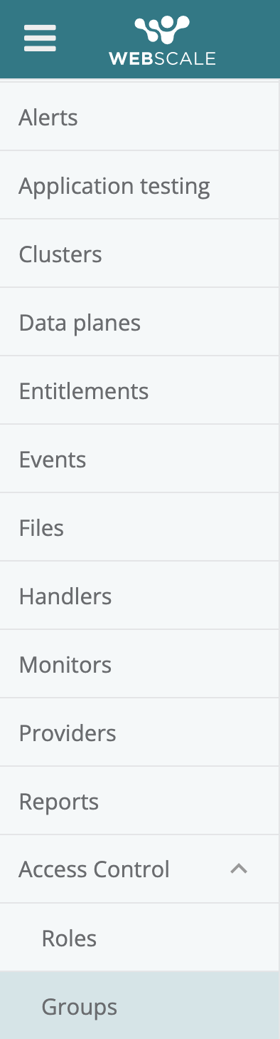 | 1. Login to the Webscale Control Panel and click the three bars in the upper left. Select Groups from the menu. |