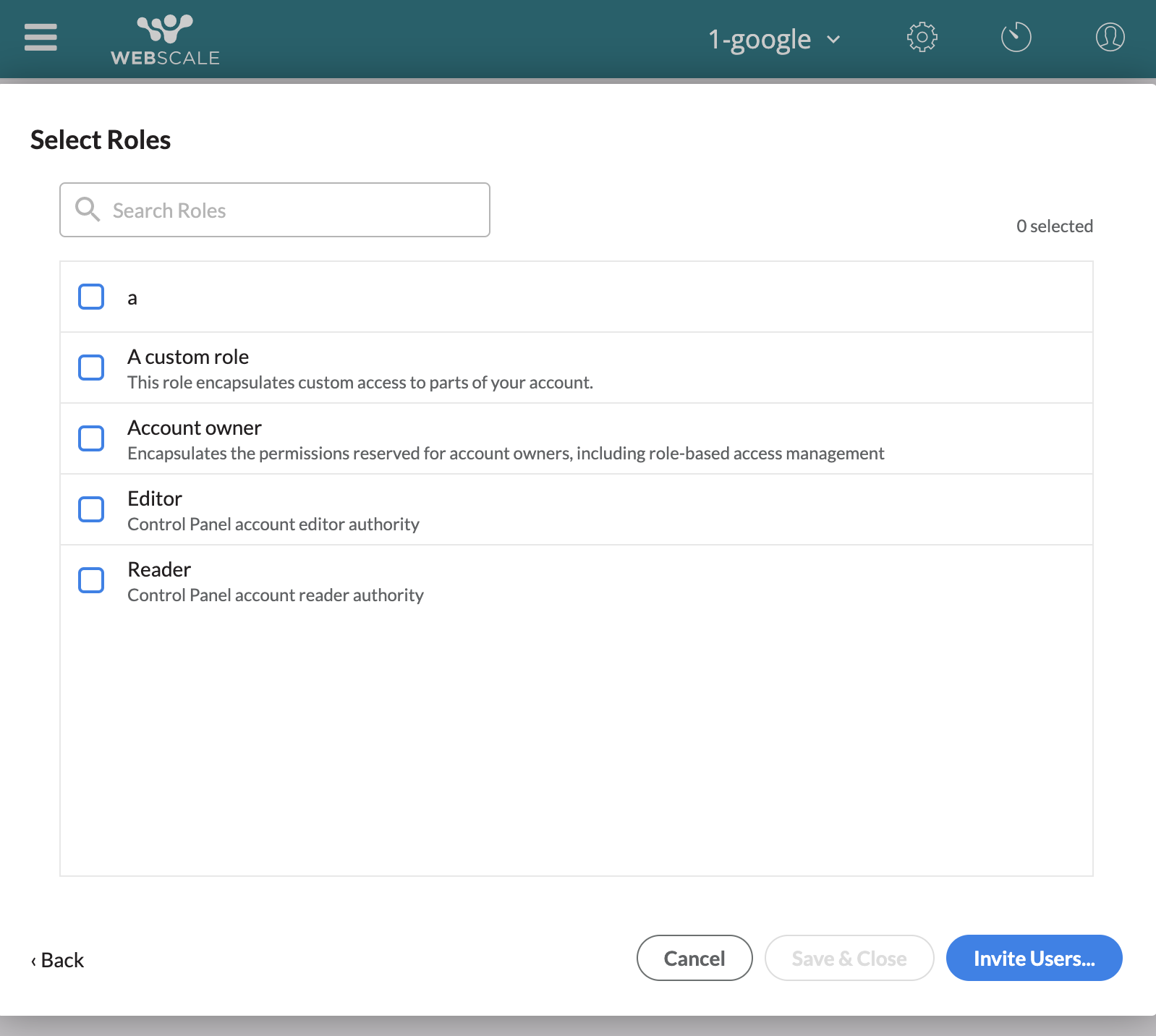 Warning:Users can leave a group. In such an event, they must be re-invited to the group if they wish to regain access.Note:If the role the user was invited to does not permit Webscale Control Panel access, the user will only have access to their User Profile. This may be the case if you only want the role to apply to the Webscale Secure Access web control, for example. |