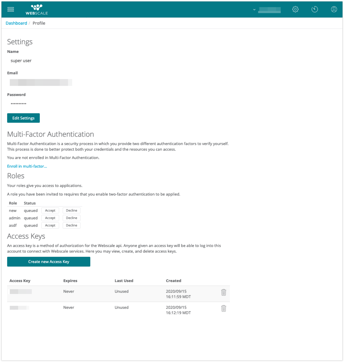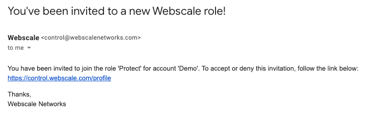 4. The user receives an email from Webscale with a link to the User Profile, where they can accept the role.