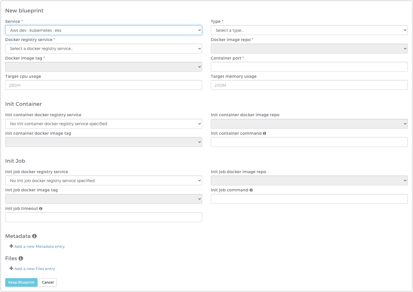 | Type | Define the type of resources specified by the blueprint. This affects scaling and configuration options. See Defining a cron blueprint. Required. |