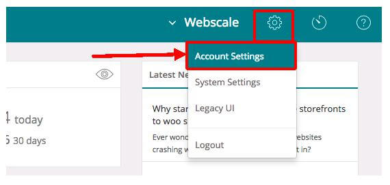| 1. Log in to the Webscale Control Panel and click the gear on the upper right, then select Account Settings from the menu. | |