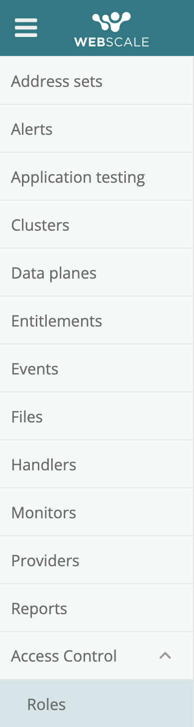 | 1. Login to the Webscale control panel and click the three bars in the upper left. Select Roles from the menu. |