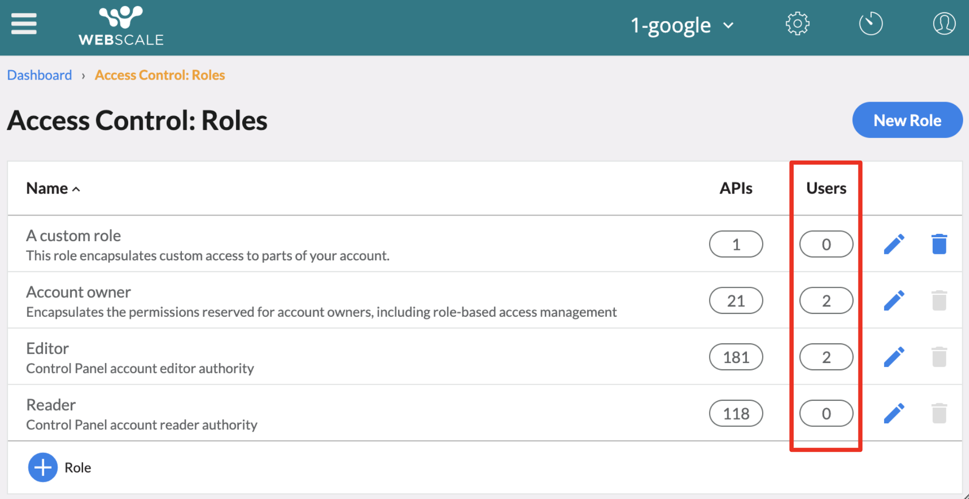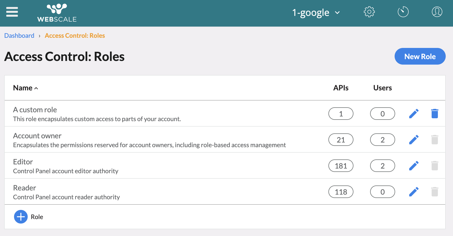 - Webscale API role-based access: a user’s access to the Webscale API is determined by the access described by the roles to which they have accepted invitations.
