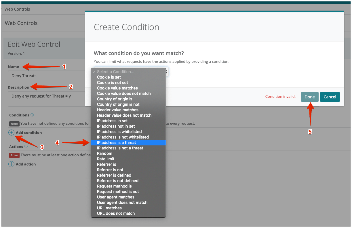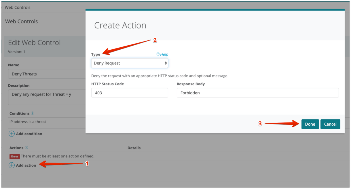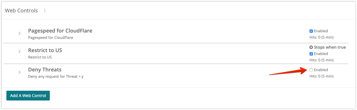 After enabling this feature, configure shielding for the application that you want to protect. Then, create Web Controls to handle traffic from sources that you consider a threat. For example, you could configure the Web Control to deny requests from a request IP if it is a known threat.