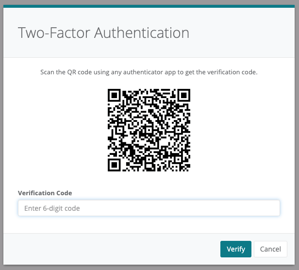 | 2. Once the user scans the QR code, the authenticator application on the user’s device will generate a 6-digit code, called a One-Time Password (OTP). Enter the generated OTP into the text field on the control panel, and click the Verify button. Note:To ensure the enrollment was done correctly, the user must confirm by entering their current password in the box that appeares after entering the OTP. |