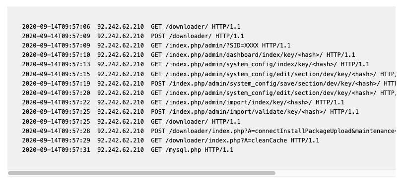 A recent use-case for these techniques is the Magento 1 CardBleed exploit. Attackers used the /downloader path in Magento 1 to attack a large number of Magento 1 storefronts. This attack may look like the following, in your access logs: