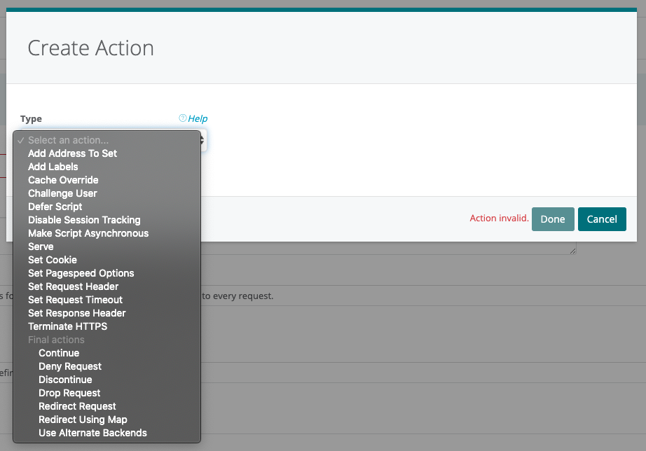 Web Controls enable you to use pre-defined security and performance rule sets. Rule sets minimize the need to discover, define, and maintain a large number of individual rules. Instead, you can create rule sets that match individual request or response conditions and execute a set of actions predefined in the Webscale Control Panel. Based on the conditions, Web Controls automatically execute a set of pre-defined actions after all conditions are met. Through Web Controls, you can create complex sequences of actions.